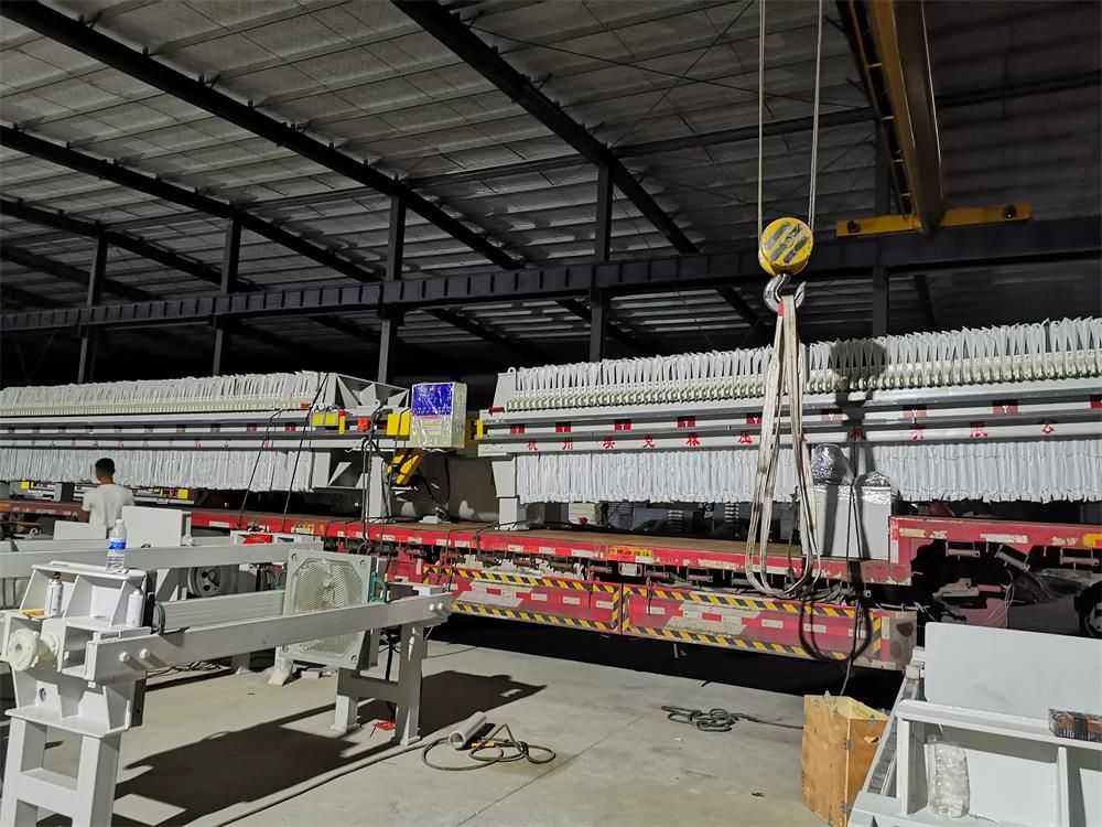隔膜壓濾機和常規(guī)箱式壓濾機的主要區(qū)別在于,在濾板的兩側(cè)都增加了兩個彈性膜(復合橡膠膜是一個整體式膜。在操作期間,當進料完成時,將高壓流體介質(zhì)注入膜中,并使整個膜膨脹以過濾濾餅,以進一步使濾餅脫水,這是壓力過濾。在隔膜壓濾機運行期間,液壓系統(tǒng)使用液壓油作為壓力載體來傳遞內(nèi)部壓力。
